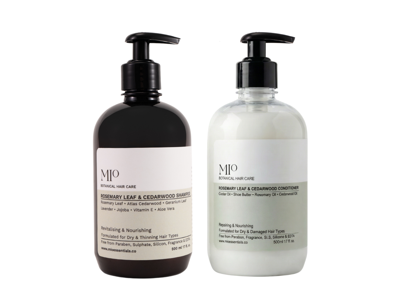 Rosemary Leaf & Cedarwood Set: Specially formulated to nourish and strengthen your hair while incorporating the benefits of aromatherapy. Infused with the stimulating properties of rosemary and the grounding essence of cedarwood, this set revitalizes your scalp, promotes healthy hair growth, and helps reduce breakage. As you cleanse and condition, the soothing scents of rosemary and cedarwood work to calm your senses, reduce stress, and promote a sense of well-being. It’s more than just hair care— it’s a holistic experience for your hair and mind, making it perfect for those who seek both beauty and wellness.