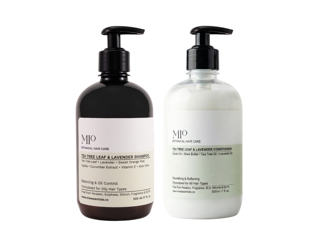 Tea Tree Leaf & Lavender Set: The tea tree oil purifies and controls excess oil, while lavender soothes and hydrates both the scalp and hair, leaving it soft, refreshed, and perfectly balanced. Infused with pure essential oils, this set harnesses the calming and revitalizing properties of aromatherapy, turning every wash into a sensory experience.